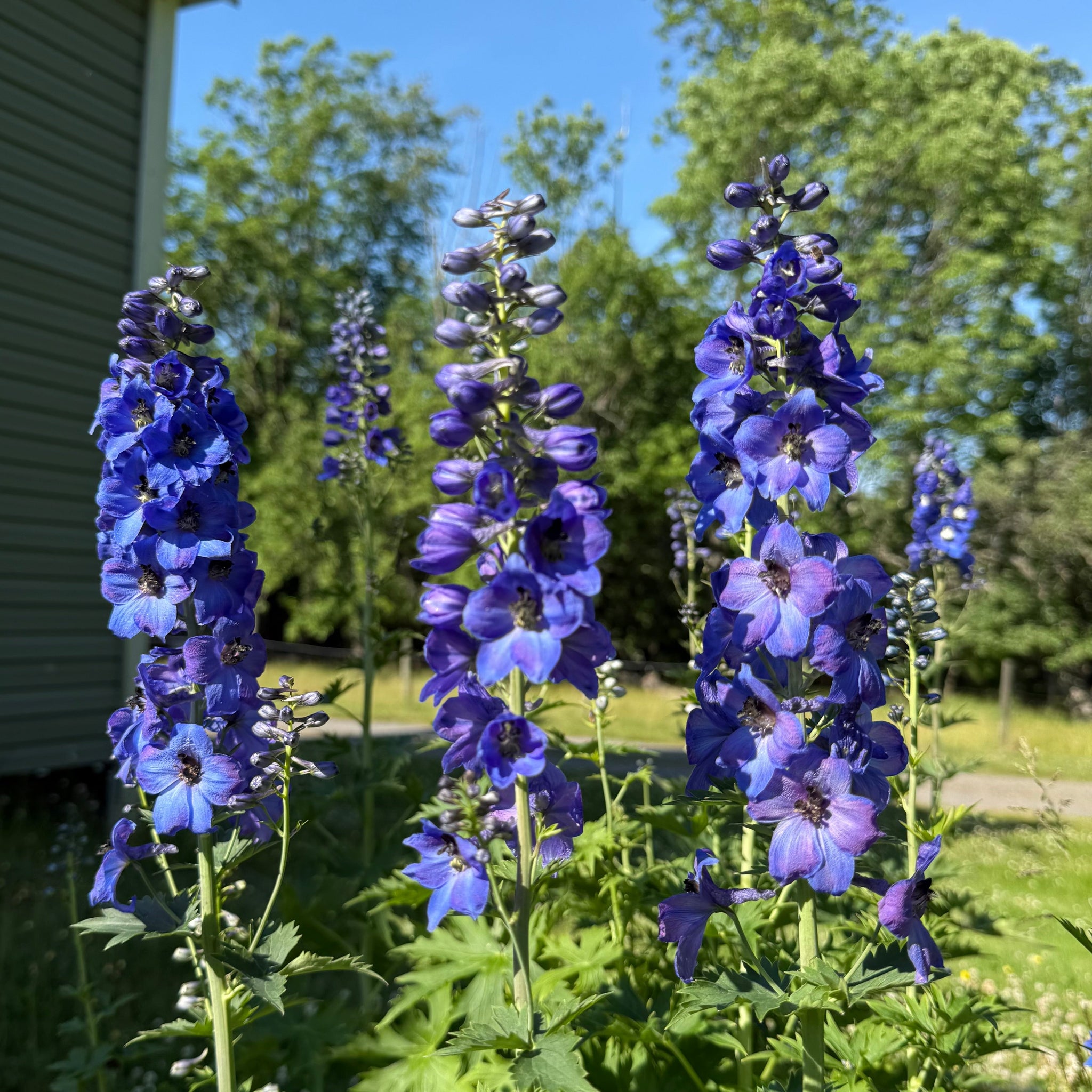 Baba's Blue Delphinium (Delphinium spp) - If B.B. King had a flower named after him, this would have been the one. Delphinium is certainly a ‘King of the Blues’ flower wherever it is grown. Few plants are more magnificent in garden beds and arboretums than delphiniums. Baba’s Delphinium plants would have been planted somewhere in the late 1940’s or early 1950’s and purchased through the Dominion Seed House of Georgetown, Ontario. The light baby blue flowers were positioned majestically on the north east corners of the garden fence like a stately, welcoming obelisk. These heirloom seeds are offered to you from my grandmother Katie’s aka ‘Baba’ flower garden.