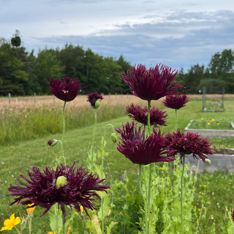 Black Swan Poppy (Papavera somniferum) A highly fringed breadseed poppy with dark burgundy, double, peony-like flowers. This beautiful annual poppy grows to 3 or even 4 feet tall. Seeds are edible and deer resistant.