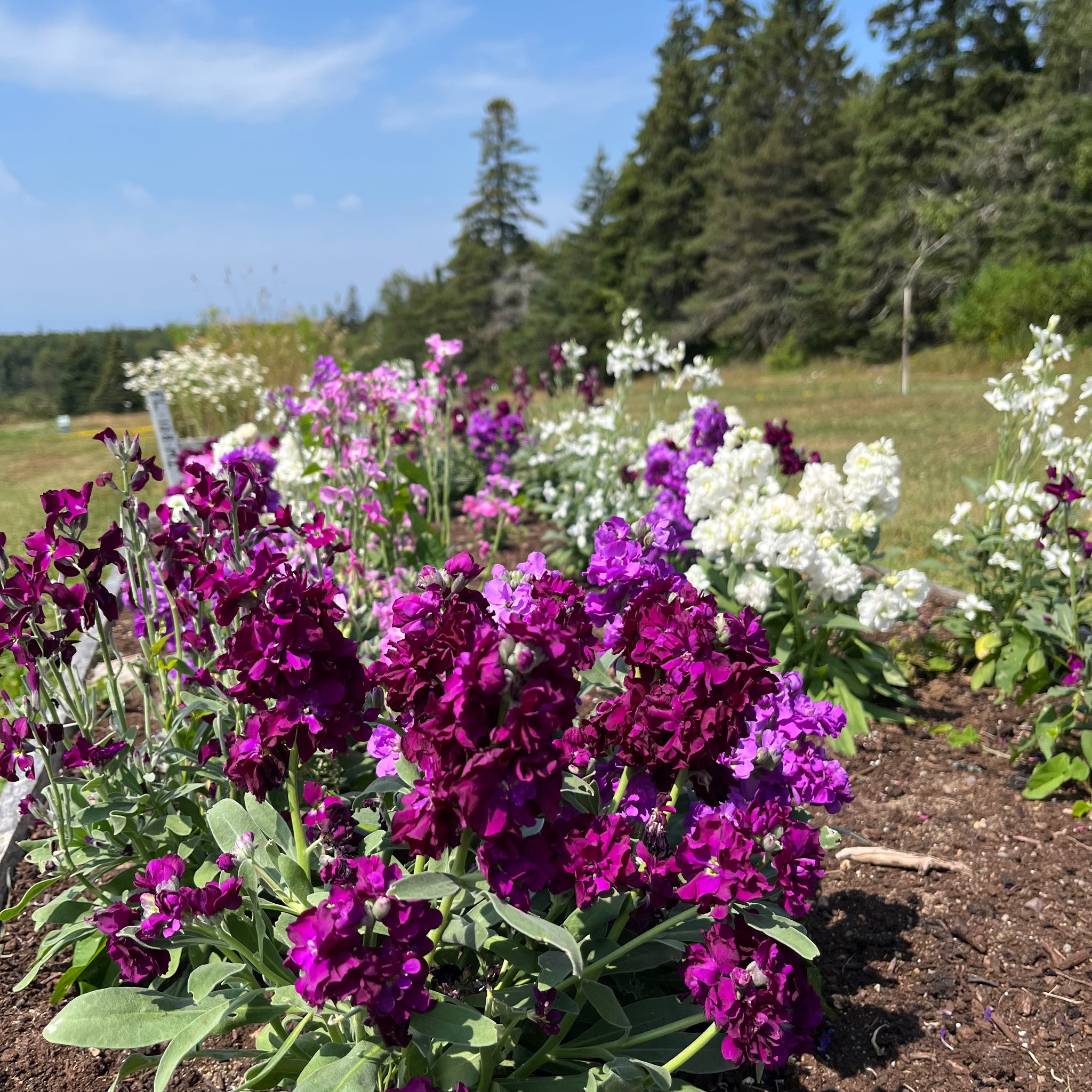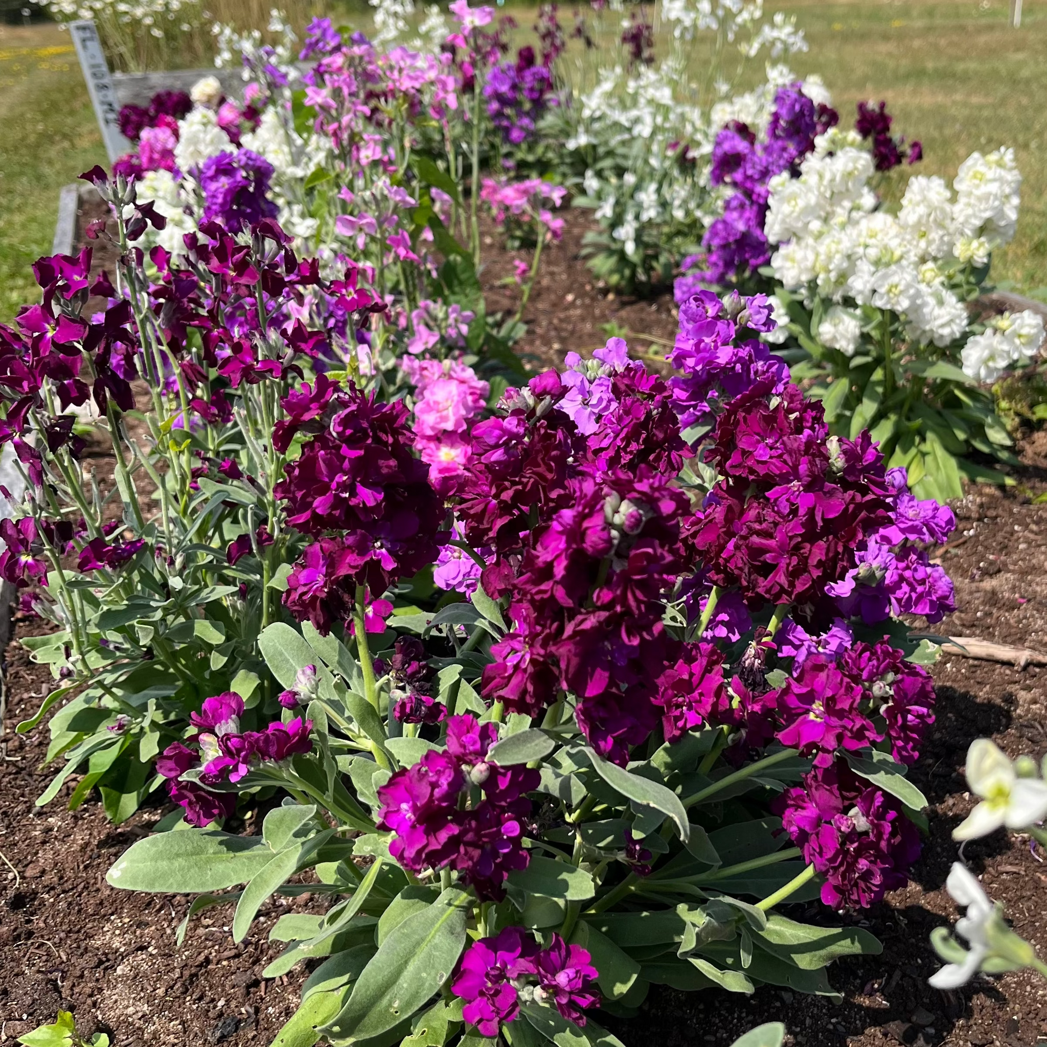 Vintage Mix Stock (Matthiola incana) An heirloom bedding plant formerly known as 'Gilliflower', classified and named after the 16th century botanist Pierandrea Matthiola. Stocky well-branched plants with grey-green leaves reach 12-20 inches in height. An early bloomer producing a variety of colours ranging from red, lilac, burgundy, peach, rose, white, and yellow. Over half of the plants tend to have fully double blooms, all highly scented. Vintage Mix Stock is an annual that prefers cool growing conditions of spring and fall and will gladly enjoy some partial shade during the heat of summer.