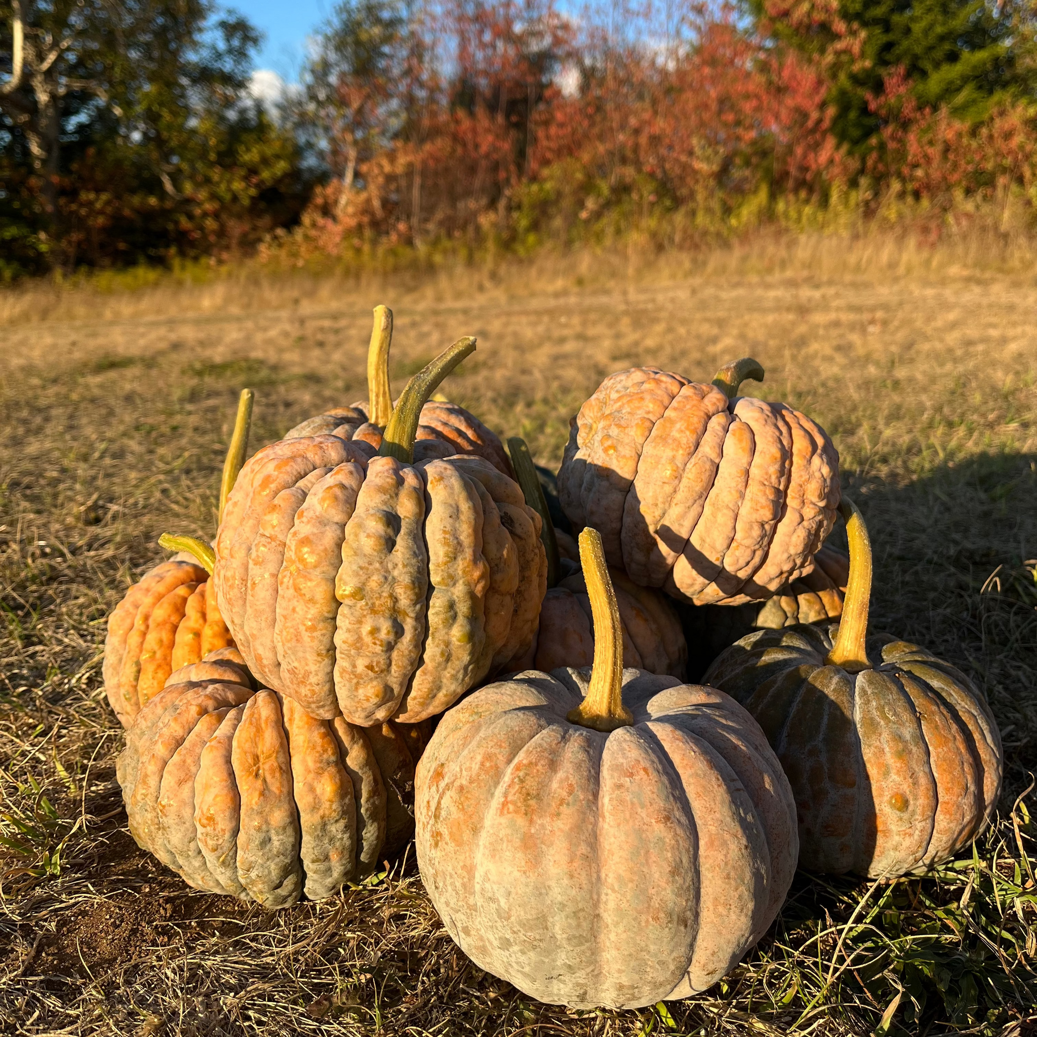 Black Futsu Squash (Cucurbita moschata) A beautiful Japanese heirloom winter squash prized for its rich, fruity flavour and uniquely bumpy, thin edible skin that needs no peeling. The smooth, golden flesh is perfect for soups and an excellent pickler. Vigorous vines produce many 3–4 lb fruits that ripen to a deep orange-brown and finish earlier than most butternuts. A true gem in the garden—and one we highly recommend you try!