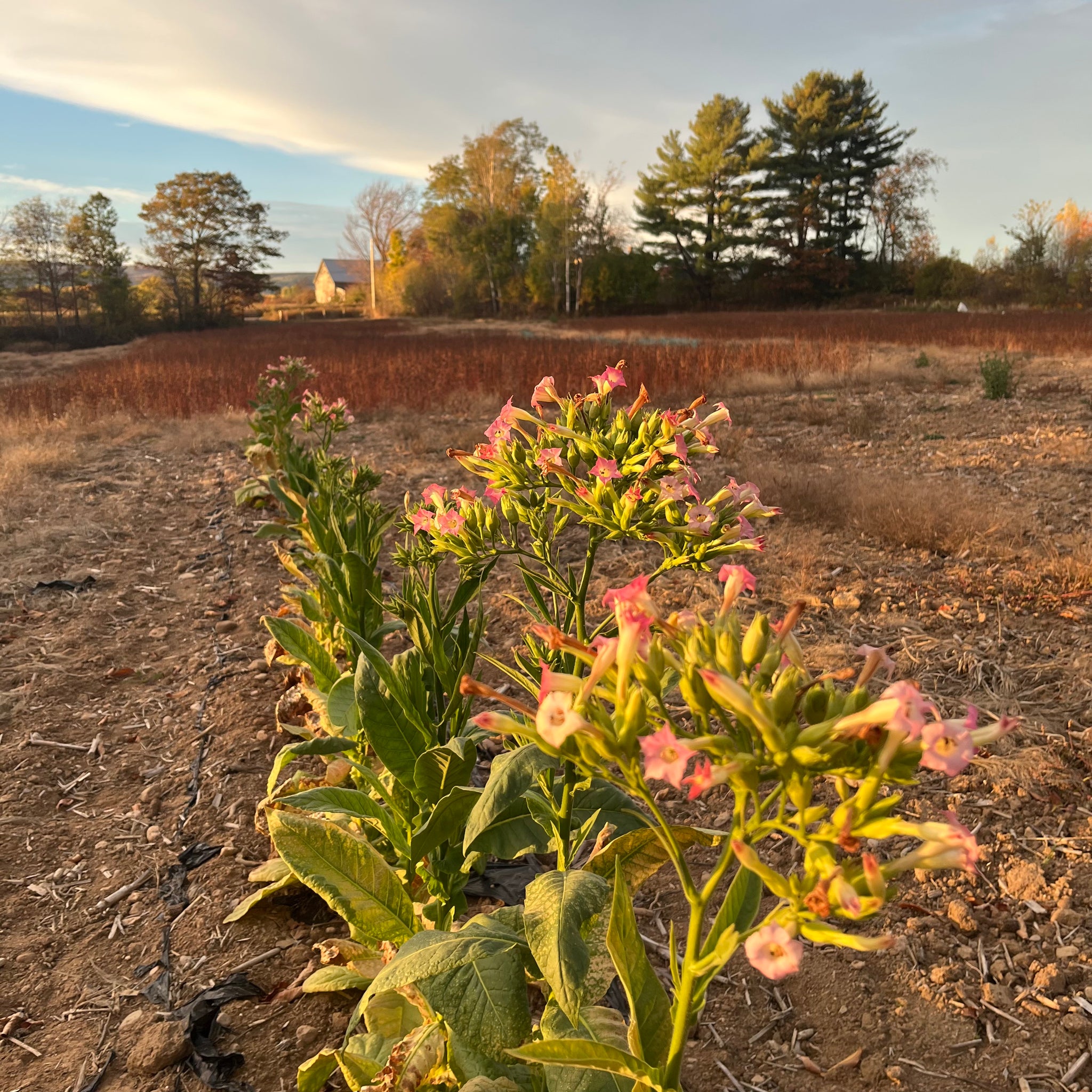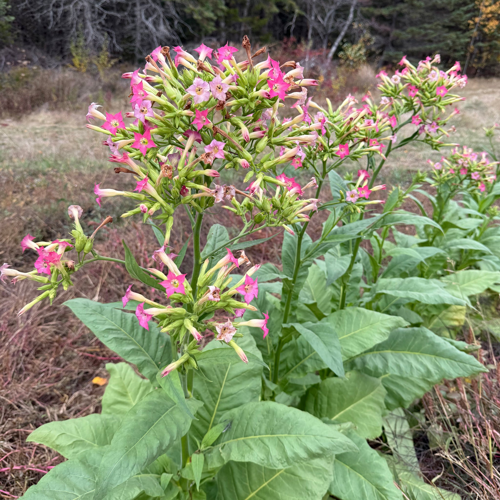 Tillsonburg Tobacco (Nicotiana tobacum) These seeds were gifted to us from Melodie Howes in a small corked bottle labeled as ‘Southern Ontario Tobacco 1950’s’. We decided to name this Southern strain after the Stompin Tom Connors song ‘Tillsonburg’. (Lyrics and chords below) The family had grown the plants many times since then, however, germination was less than 5 % in our first trial of 2023. Since then we have had time to build up a plant population and evaluate the species. Our best conclusion points towards an old Louisiana or Mississippi, Burley-type of heirloom tobacco, historically used for pipe and cigarette blends. This tobacco is very ornamental with light pink tubular flowers towering on 4-5’ plants with large tropical, light green leaves that are largest at the ground level. Flowers bloom for most of the summer right into late fall. An Extremely Rare strain from the Howes family. Prefers part to full sun.