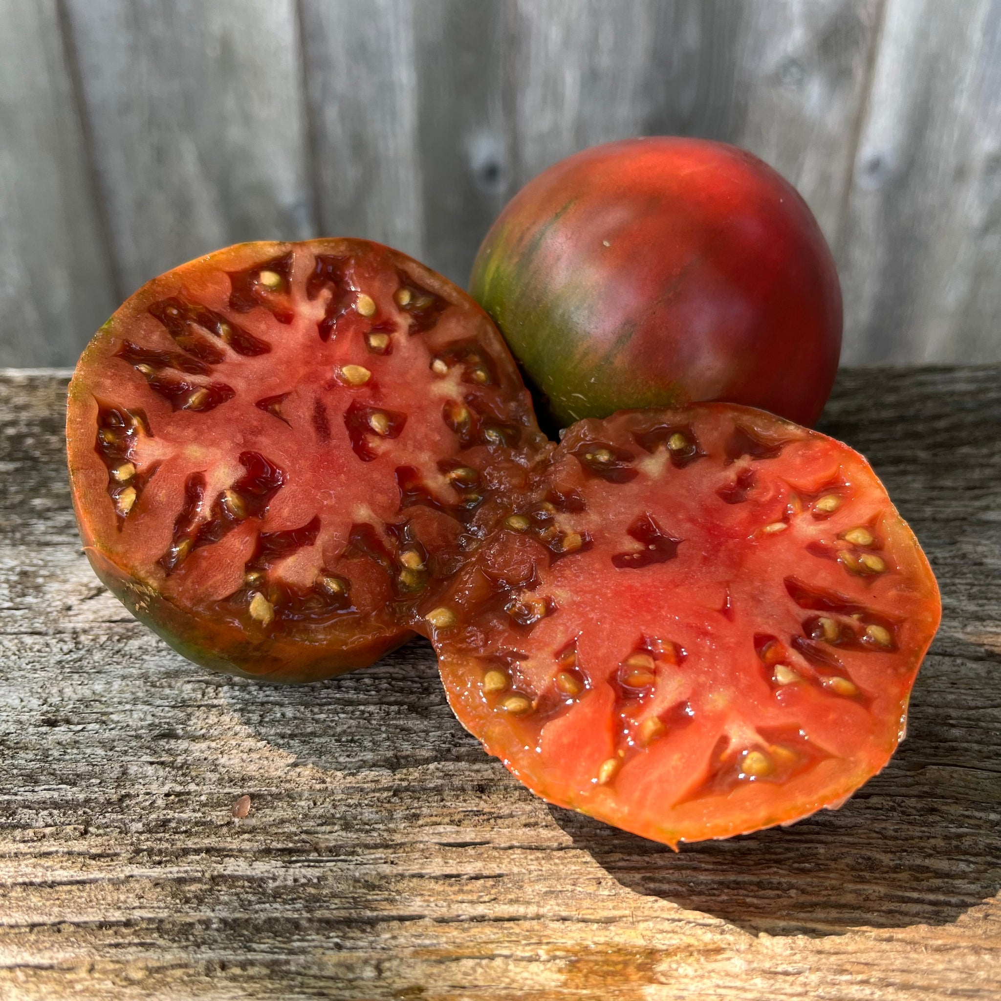 Black Crimean Tomato (Solanum lycopersicum) This Eastern European heirloom is also referred to as the Black Sea Man. A real nice save from the folks at Seed Savers Exchange who first offered this black tomato, grown and collected from seeds-woman Marina Danilenko & family with seed lineage likely of Crimean origins. We have been very impressed with the plants response here in Atlantic Canada over two years of field trials. A very rich and flavourful tomato that is a welcome addition to a wide variety of dishes. The fruits are dark green and deep red. Plants are semi-determinate, growing to a height of 3-4 ft and often require stakes or supports to hold the vines up. Ripens to a blood red with cooler nights while increasing in flavour!